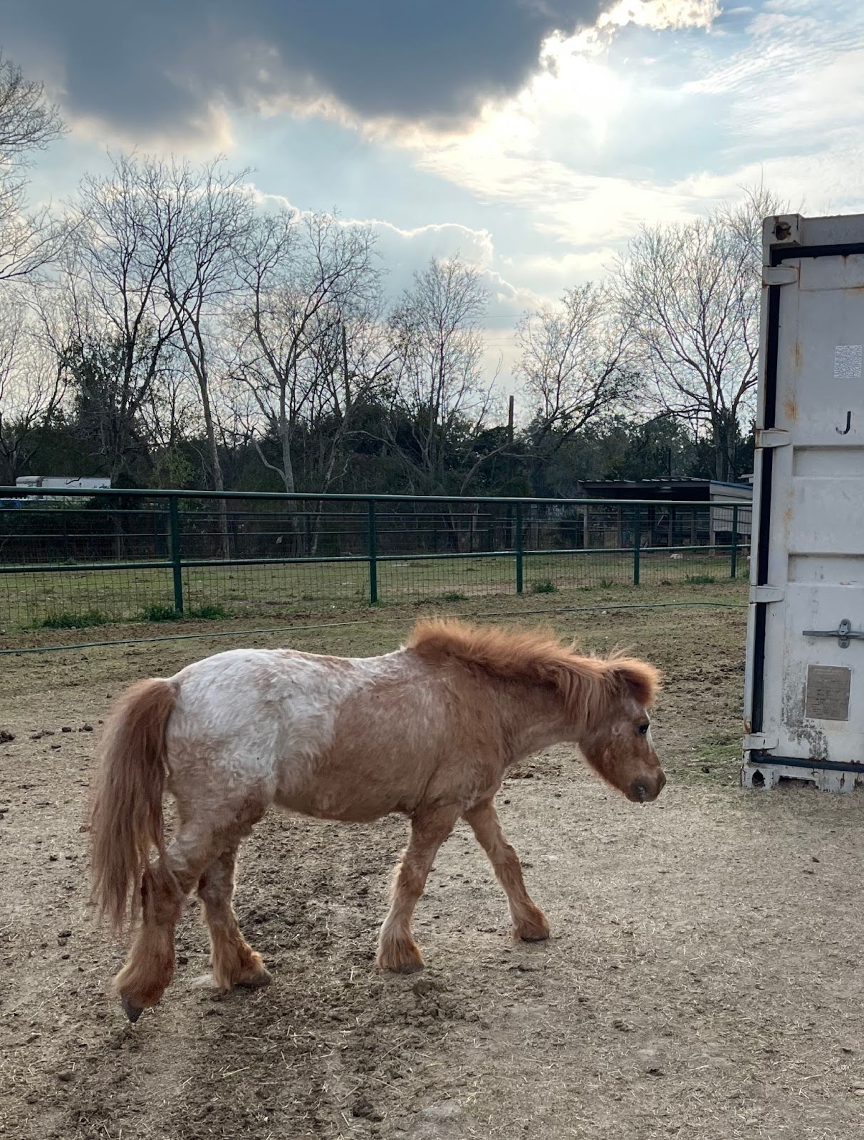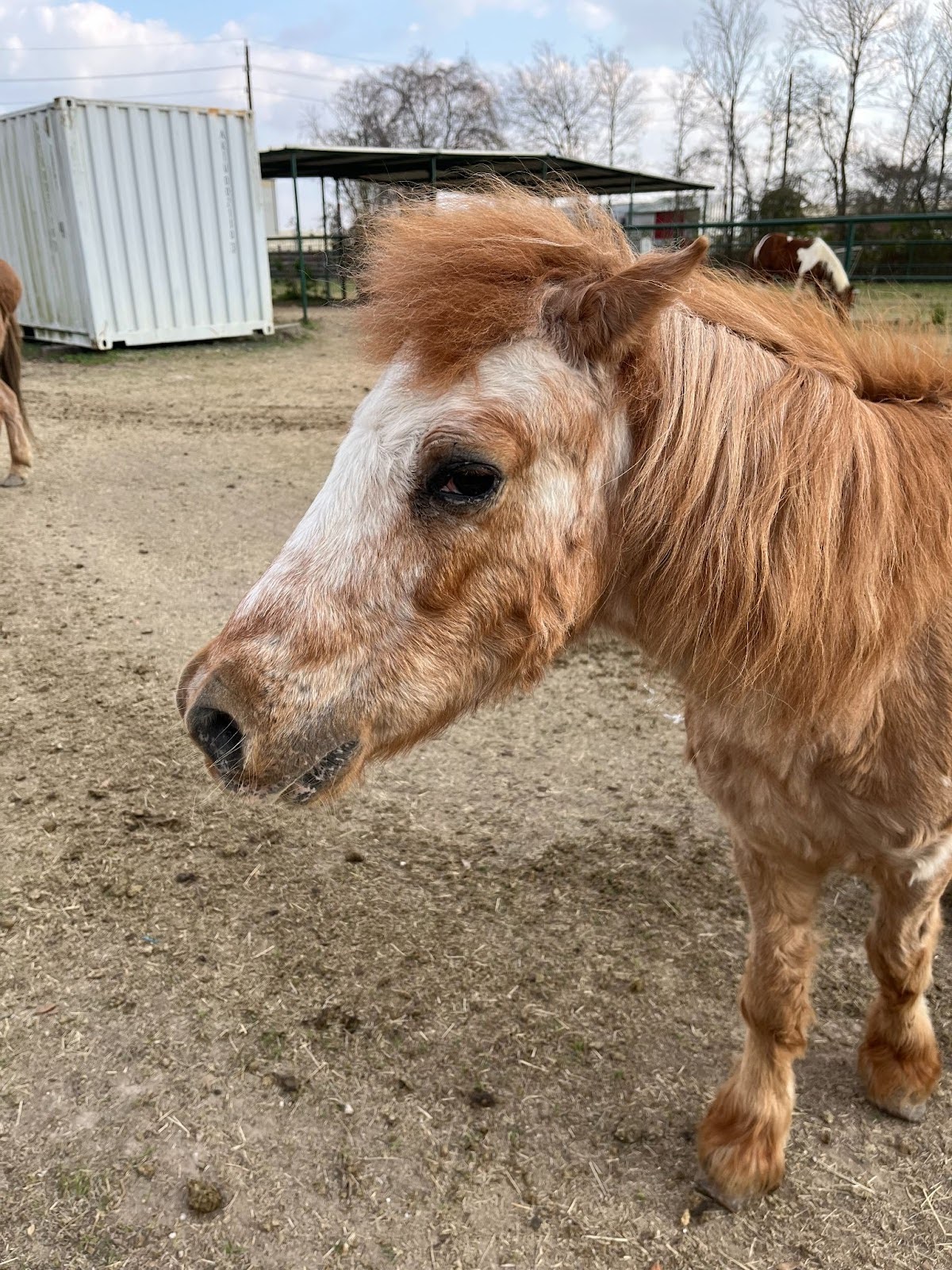 Caramel is a charming miniature gelding whose warm personality perfectly matches his name. Calm, friendly, and easy to love, he enjoys gentle attention and truly shines when spending time with his people. Brushing sessions are one of his favorite activities, and he is always content just hanging out nearby, soaking up companionship.