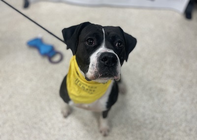 Volunteers said she has perfected several tricks, including “sit,” and “hug,” and is eager to learn more!