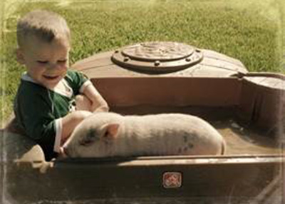 Thanks To Houston Humane Society for rescuing the animals from the Santa Fe Feed Store in April 2016. We are so proud and excited to be welcoming Penelope Pig to our family. She is fitting in great! Our 2 kids ages 6 years, and 2 years love spending their free time outdoors with her, playing hide and seek, chase, and "swimming" (just sitting in the water to cool off). She will be forever loved in our home!