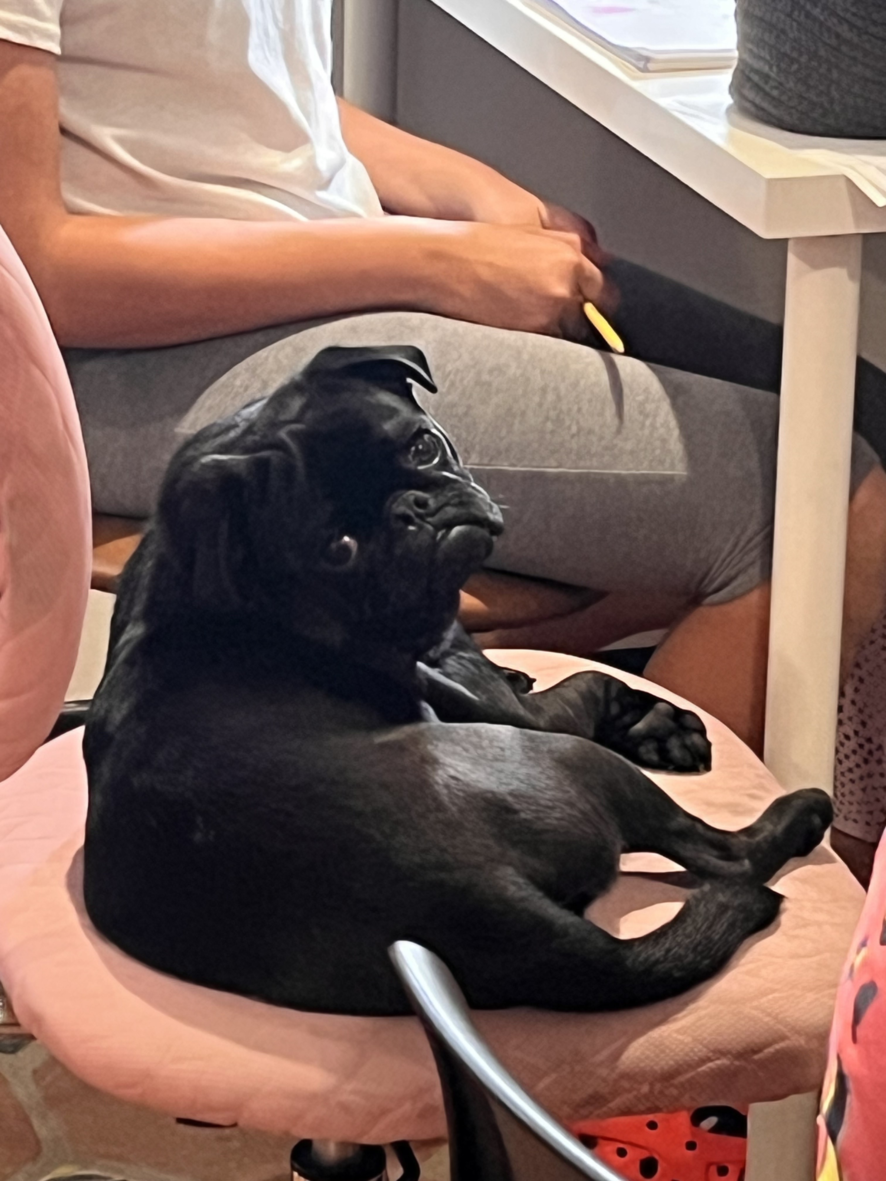Pablo, an adorable black pug, was adopted in January, and he immediately became a part of the family.