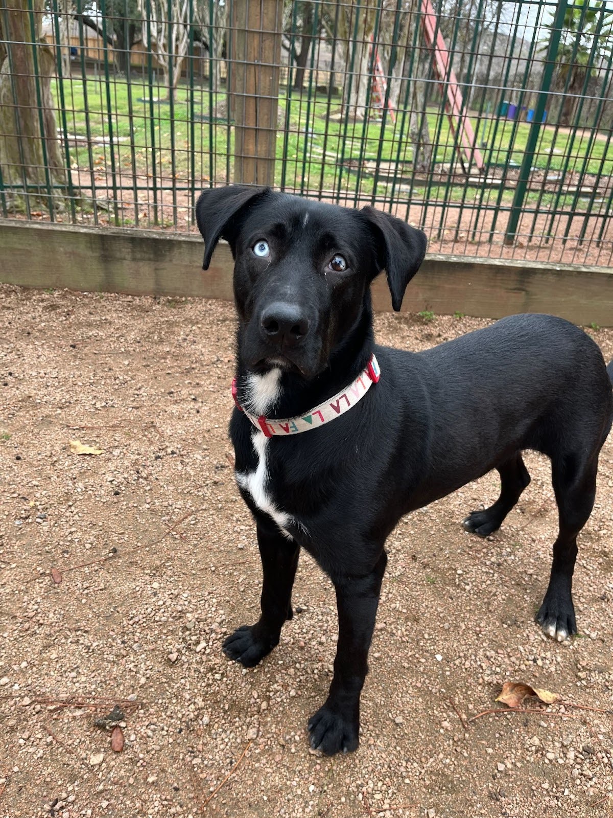 Kenny is a handsome one-and-a-half-year-old black lab mix with the coolest bicolor eyes and a personality that lights up the room. Our staff can’t stop raving about his goofy charm and jolly, happy-go-lucky attitude. He’s the kind of dog who makes every day feel a little more fun.