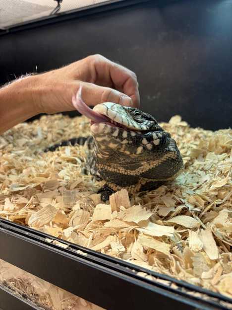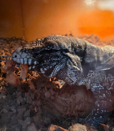 The Godfather, a charming black and white Argentine tegu, has embraced his new life with his devoted owners, Jacob and Michelle. Adopted from the Houston Humane Society, he stands as a testament to resilience and love. Despite facing challenges with limited eyesight that affects his eating habits, The Godfather has thrived in the caring environment provided by his new family. His playful personality shines through as he navigates his home, creating joyful moments and proving with the right support, even the toughest adjustments can lead to a fulfilling life.